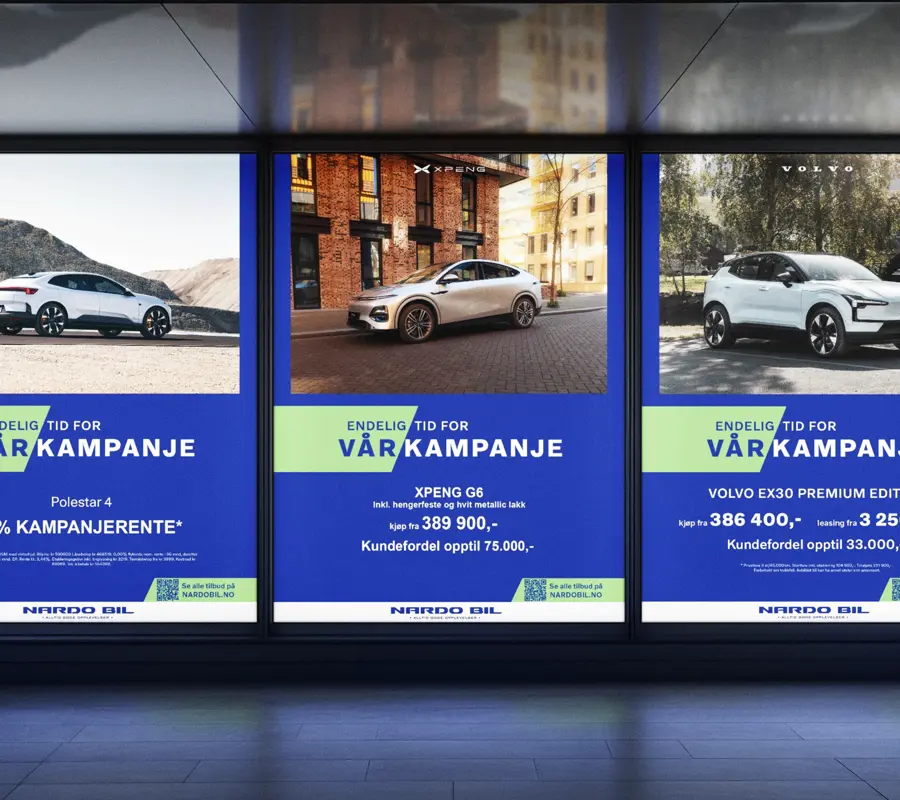 Verdien ligger ikke i selve annonsekjøpet, men i samarbeidet rundt det. Sammen med Nardo Bil bygde vi en helhetlig rigg på tvers av digitale kanaler, fysiske flater, print, radio og utstillinger, ikke enkeltstående tiltak, men en sammenhengende kommunikasjon som skapte gjenkjenning og satte spor. En slik helhet bygges gjennom tett samarbeid over tid.